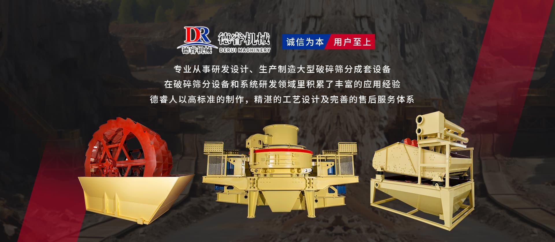 德睿重型機械是從事研發設計、生產制造大型破碎篩分成套設備的現代高新技術企業集團,公司總部座落于廣東工業重鎮、韶關市湞江區工業園,有現代化辦工場地、研發中心和標準化廠房,多種大型機械加工設備10余套,現公司技術人員40余名。 公司在主要城市均設有辦事處,配有豐富實戰經驗的設計工程師,方便為各地客戶現場分析、配置生產線并提供及時、周到的售后服務。 目前產品已覆蓋東南亞、中東、非州、歐州等多個國家和地區,并獲得客戶的好評。公司已成為主要的專業礦山設備,工業磨粉、碎石制砂設備的生產和出口基地之一。 “誠信為本,用戶至上”德睿人以高標準的制作,精湛的工藝設計及完善的售后服務體系在破碎篩分設備和系統研發領域里積累了豐富的應用經驗。借助在破碎行業的豐富經驗,公司可向客戶提供碎石制砂生產線設計、安裝、調試等交鑰匙工程,同時承接破碎系統的爆破、裝運、破碎等生產運行總承包。